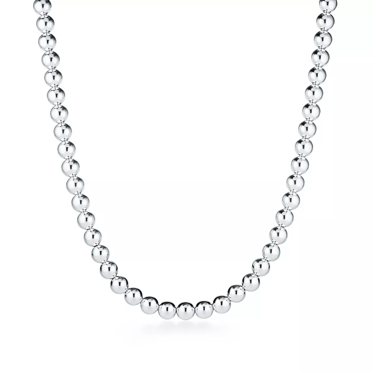 Tiffany HardWear — это воплощение преобразующей силы любви. Вдохновленный классическим браслетом 1962 года, найденным в архивах Дома, бренд HardWear воплощает в себе непреходящую стойкость и раскрепощенный дух. Это колье состоит из цепочки с шариками из стерлингового серебра и эффектным шарообразным элементом в центре. Чтобы создать смелый образ, дополните это колье другими украшениями HardWear разной длины.