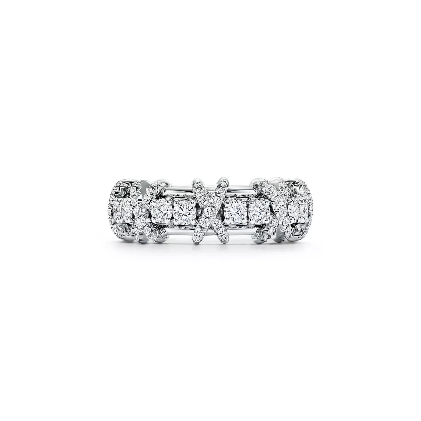 «Шестнадцать камней» от Tiffany — это воплощение созидательной силы любви. Коллекция, созданная легендарным дизайнером Жаном Шлюмберже в 1959 году, вдохновлена вышивкой крестиком, которая была традиционным занятием его семьи. Круглые бриллианты чередуются с платиновыми крестами, создавая этот ослепительный дизайн.